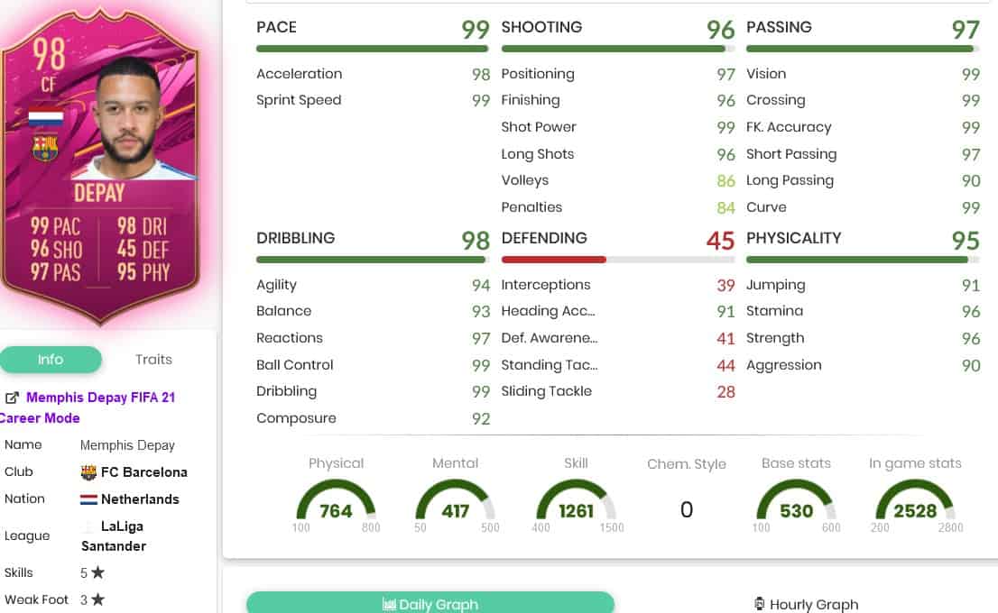 Depay fifa 21 stats. Create your own FIFA 21 Ultimate Team squad with our Squad Builder and find player stats using our Player Database. Memphis Depay 98 - live prices in-game stats comments and reviews for FIFA 21 Ultimate Team FUT. His workrates are High Medium.